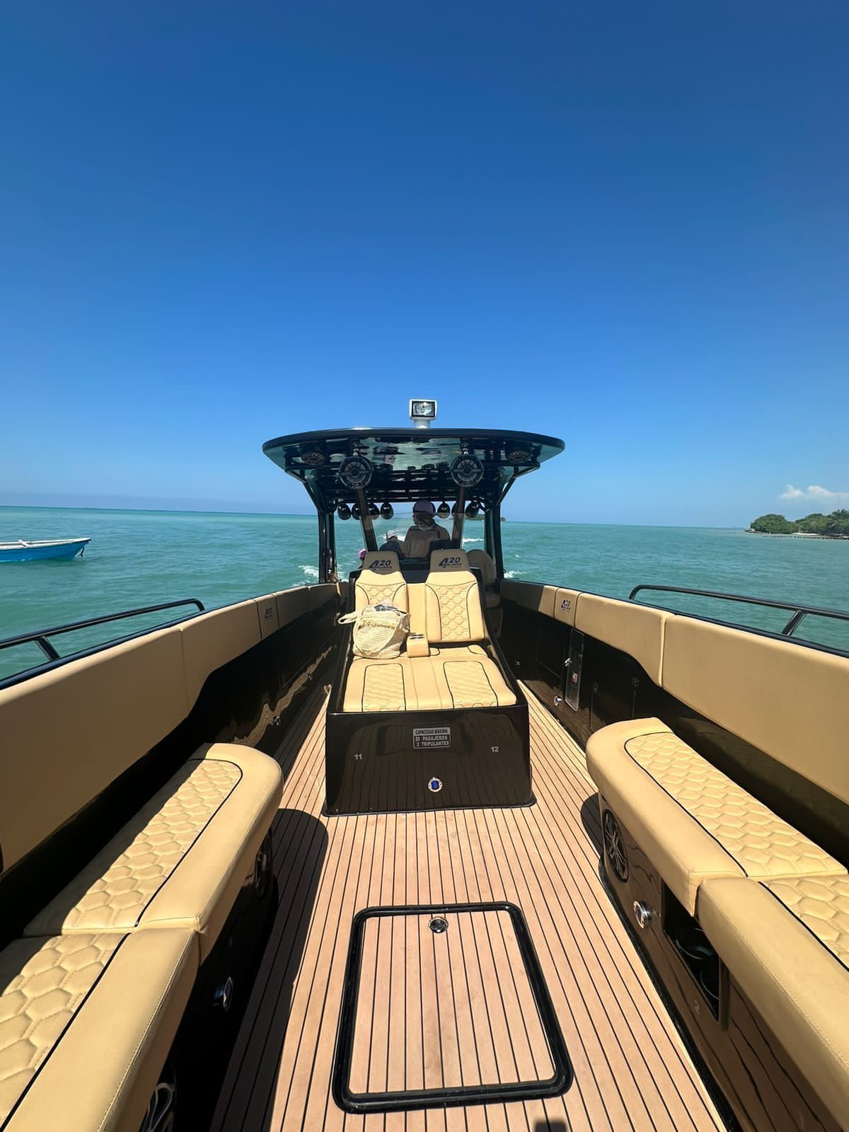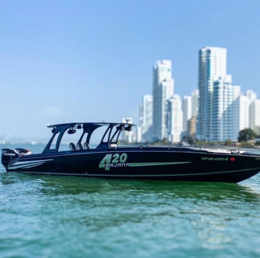 Lancha de 34 pies con 2 motores yamaha 200, sonido JL y puerto RX100. Carpa para el sol baño y asoleadoras. capacidad para 14 personas. cuenta con Baño